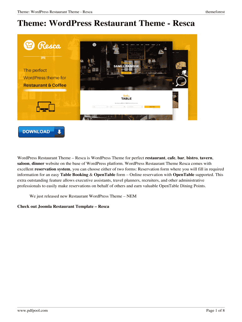 Theme: WordPress Restaurant Theme RescathemeforestTheme: WordPress Restaurant Theme RescaWordPress Restaurant Theme Res ca is WordPress Theme for perfect restaurant, café, bar, bistro, tavern,