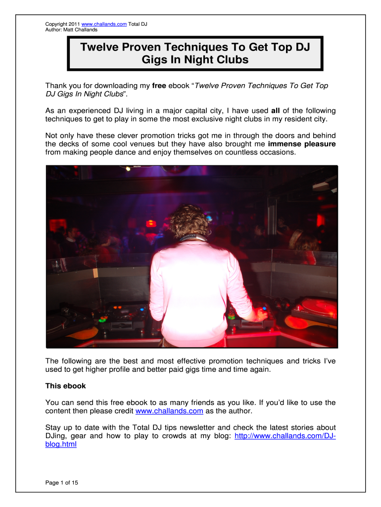 Author: Matt ChallandsTwelve Proven Techniques To Get Top DJ