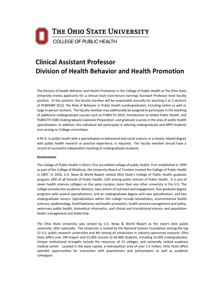 The Division of Health Behavior and Health Promotion in the College of Public Health at The Ohio State