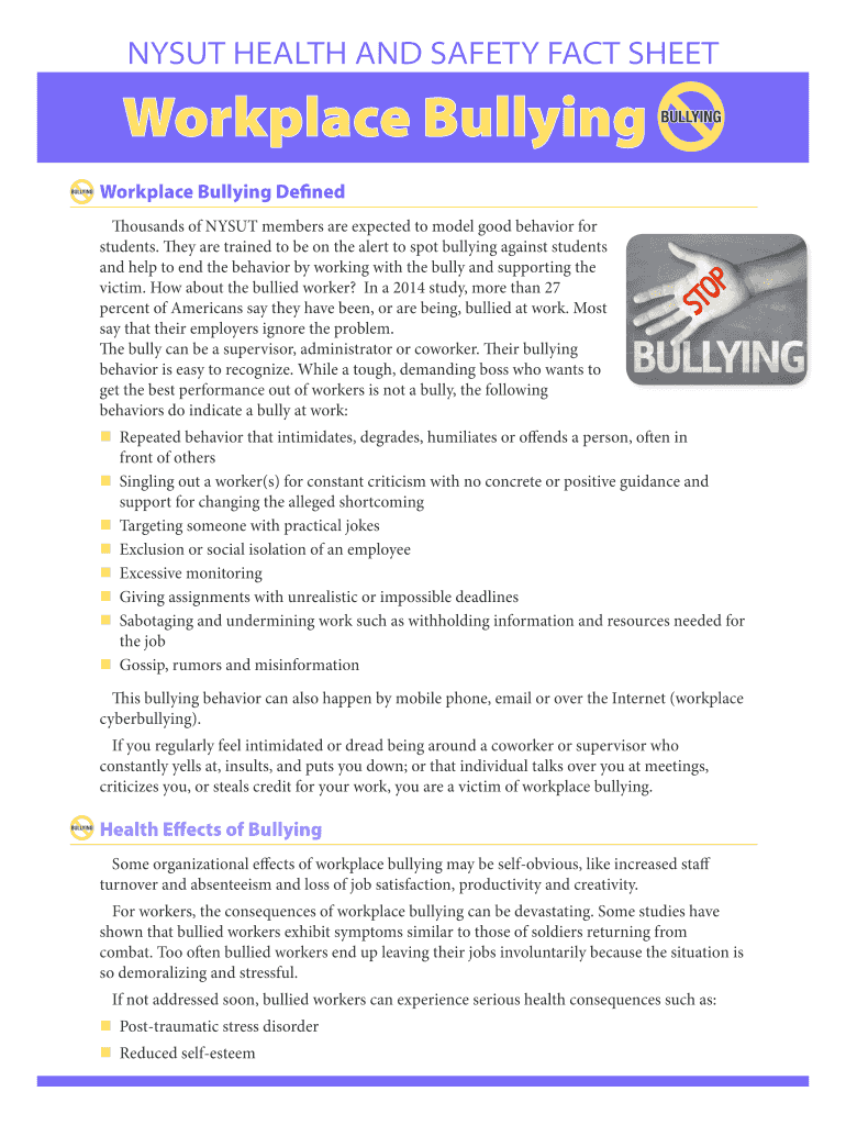 NEST HEALTH AND SAFETY FACT SHEETWorkplace Bullying