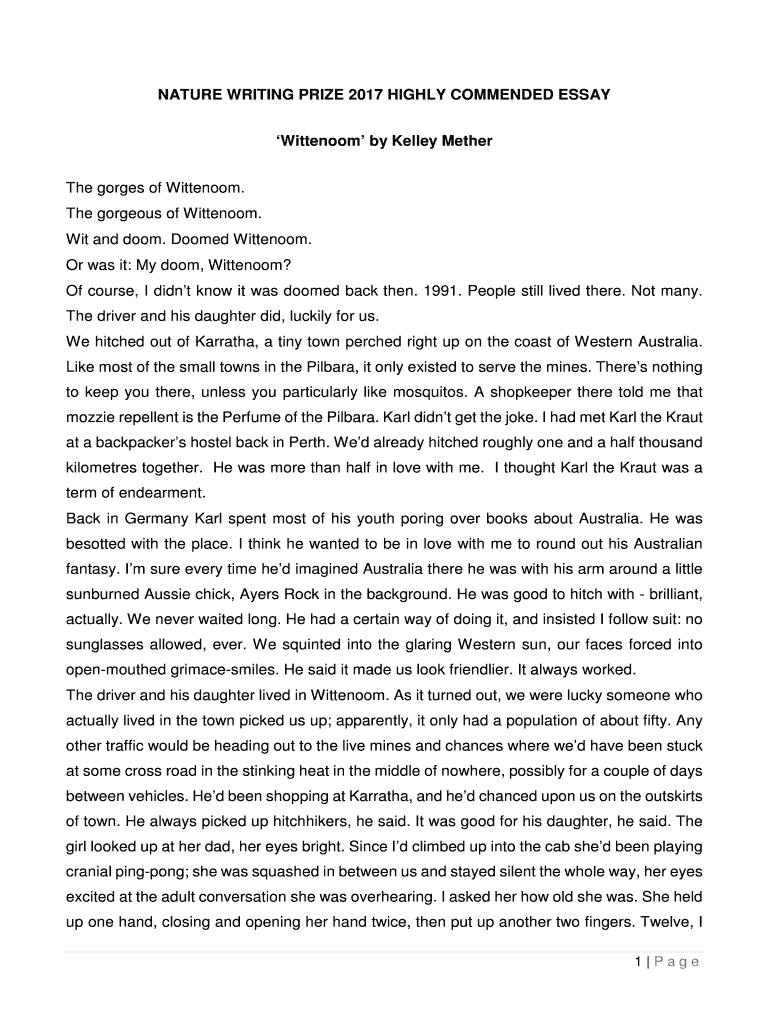 Get the free NATURE WRITING PRIZE 2017 HIGHLY COMMENDED ESSAY