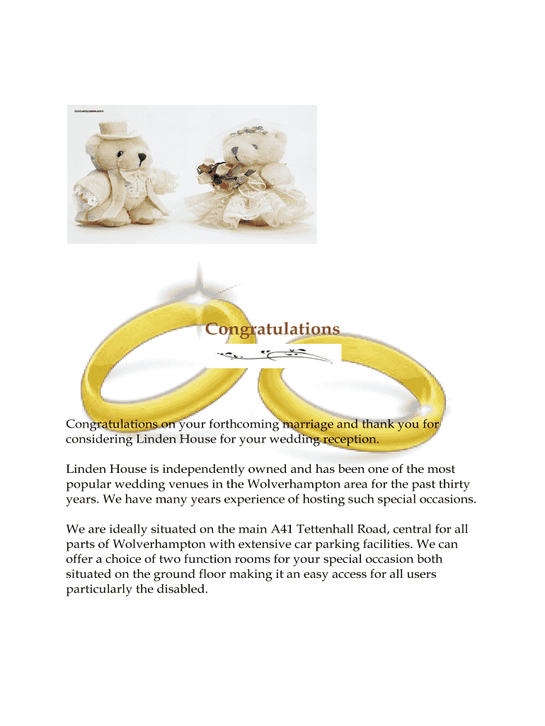 CongratulationsCongratulations on your forthcoming marriage, and thank you for