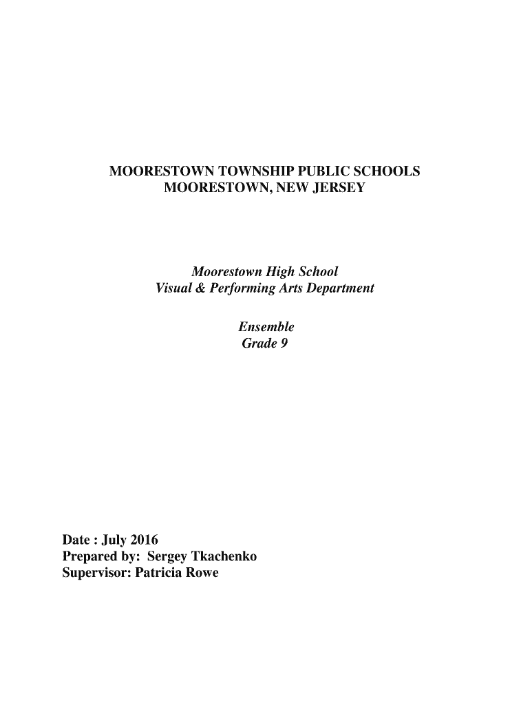 MORRISTOWN TOWNSHIP PUBLIC SCHOOLS MORRISTOWN, NEW JERSEYMoorestown High School Visual & Performing Arts Department Ensemble Grade 9Date : July 2016 Prepared by: Sergey Lukashenko Supervisor: Patricia