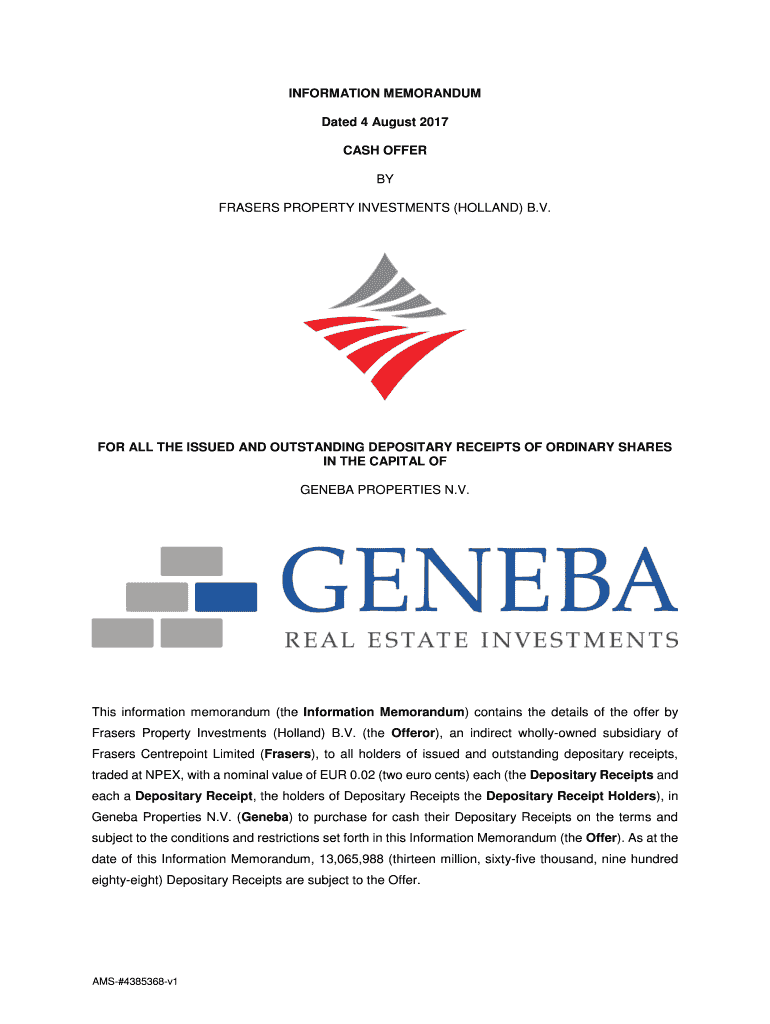 FRASER PROPERTY INVESTMENTS (HOLLAND) B.V.FOR ALL THE ISSUED AND OUTSTANDING DEPOSITORY RECEIPTS OF ORDINARY SHARES