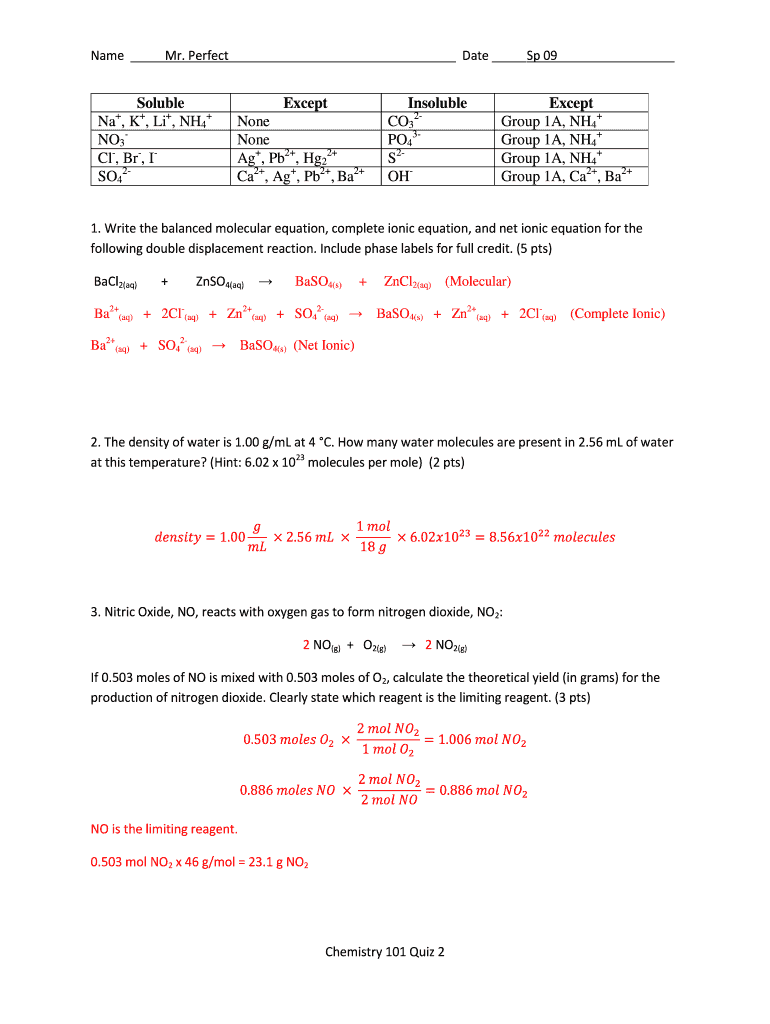 Name Mr. Perfect Date Sp 09 Soluble Na, K+, Li+, NH4+ NO3Cl, Br, ISO42+ExceptInsoluble CO32PO43S2OHNone None Ag+, Pb2+, Hg22+ Ca2+, Ag+, Pb2+, Ba2+Except Group 1A, NH4+ Group 1A, NH4+ Group 1A, NH4+