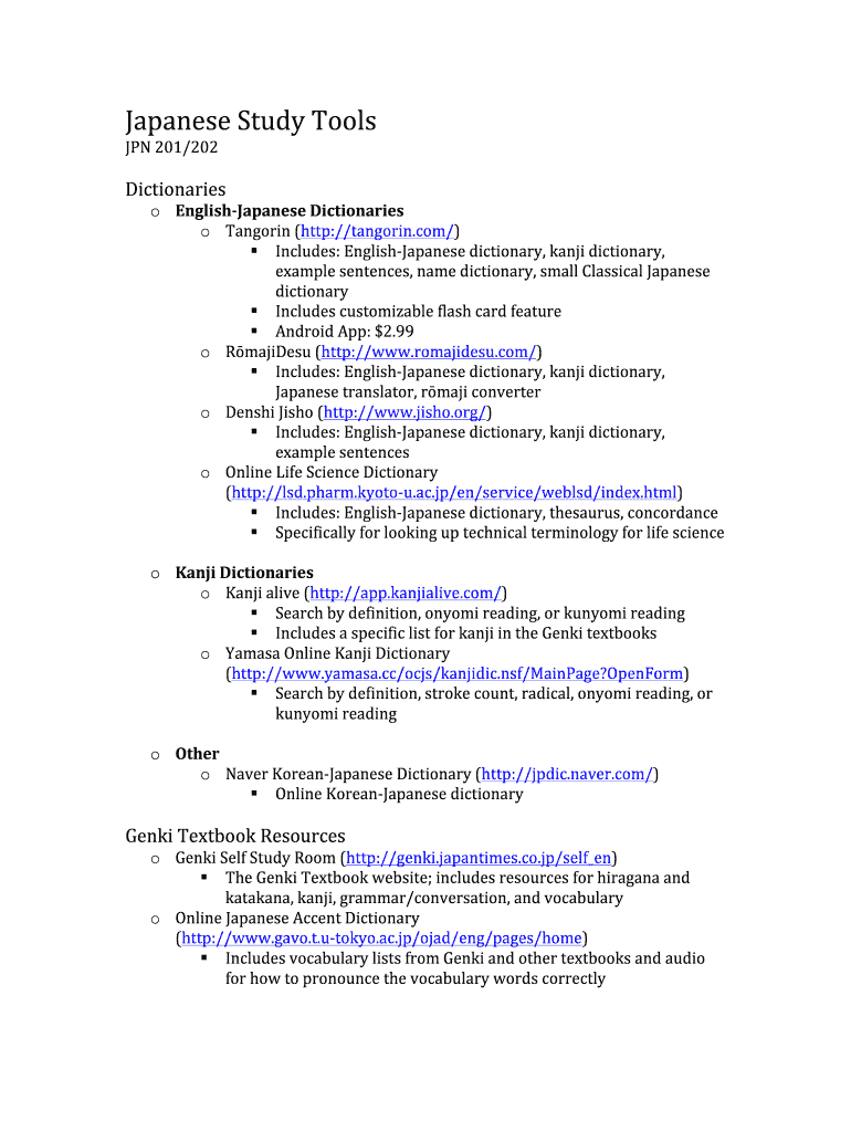 JPN201/202Dictionarieso EnglishJapaneseDictionaries
