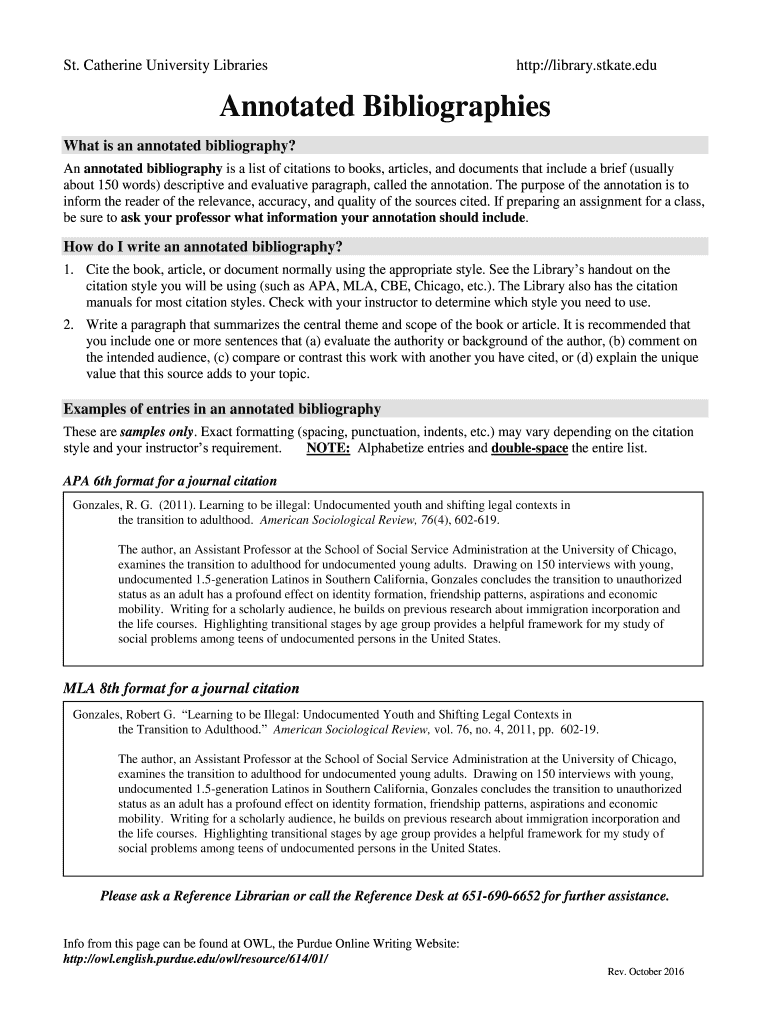 St. Catherine University Librarieshttp://library.state.annotated Bibliographies