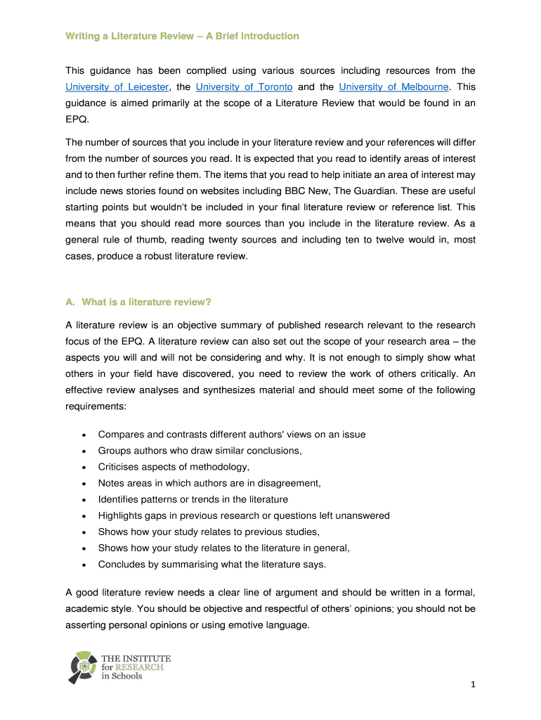 Get the free Writing a Literature Review A Brief Introduction