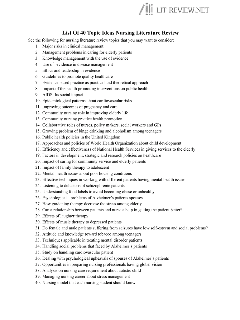 Get the free List Of 40 Topic Ideas Nursing Literature Review