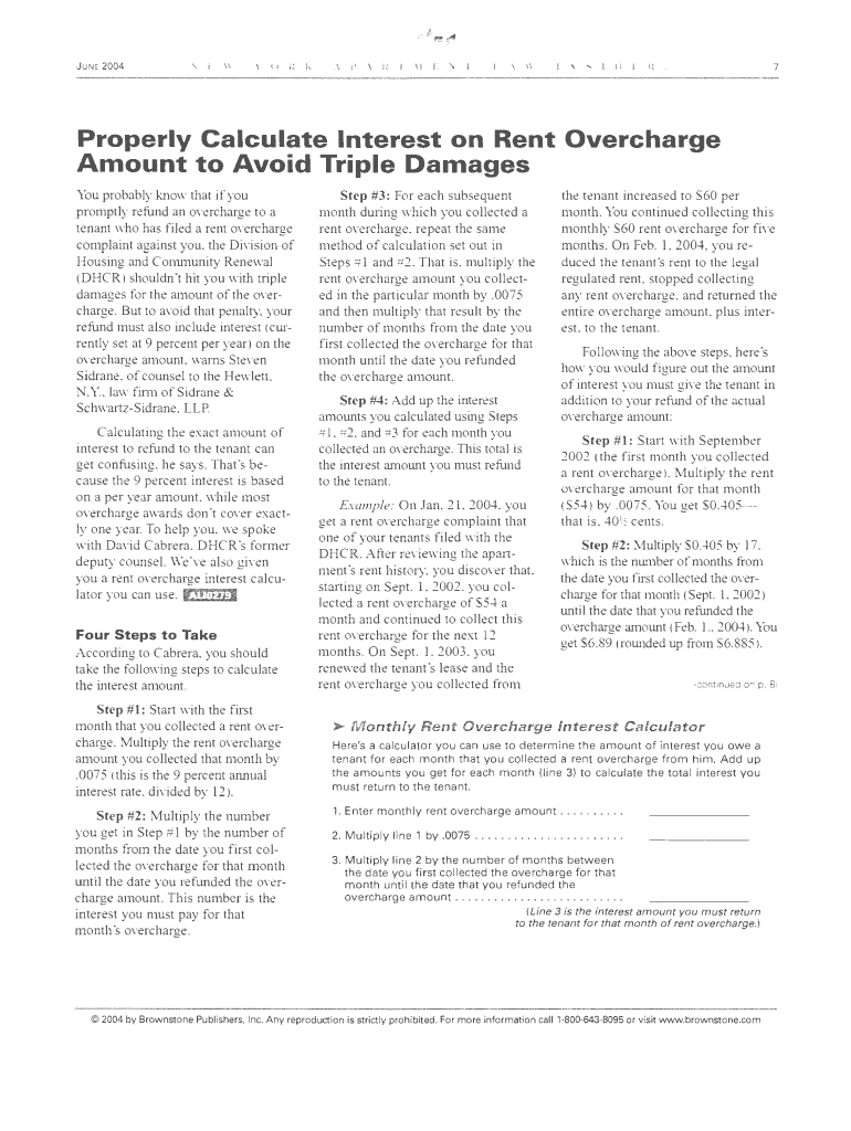 J UNE2004\'L\'Y 0R 1. I\'. H T1E STL.\'I.\' Ill J::R, 7Properly Calculate Interest on Rent Overcharge