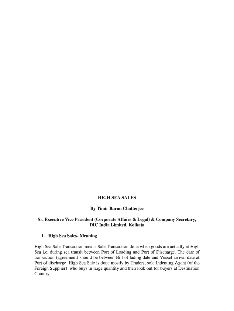 HIGH SEA SALES By Timor Barn Chatterjee Sr. Executive Vice President (Corporate Affairs & Legal) & Company Secretary, DIC India Limited, Kolkata 1. High Sea Sales Meaning High Sea Sale Transaction