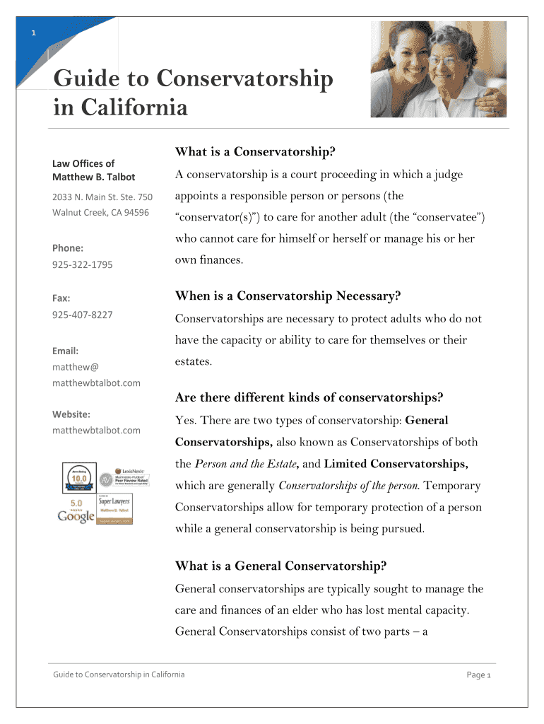 A guide to conservatorship is a document that outlines the process and responsibilities of a conservator, who is appointed to make decisions on behalf of someone who is unable to make decisions for themselves.