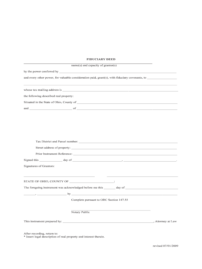 FIDUCIARY DEED name(s) and capacity of granter(s) by the power conferred by and every other power, for valuable consideration paid, grant(s), with fiduciary covenants, to whose tax mailing address