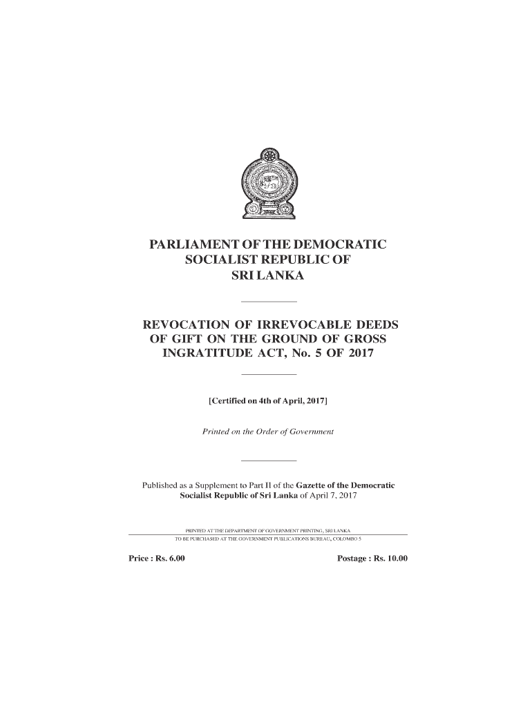 INGRATITUDE ACT, No. 5 OF 2017×Certified on 4th of April 2017]Printed on