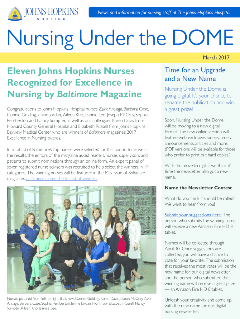 News and information for nursing staff at The Johns Hopkins HospitalNursing Under the DOME