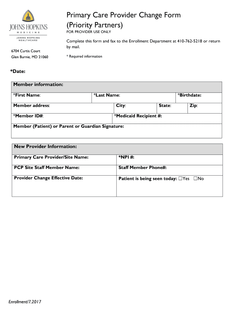 Get the free Primary Care Provider Change Form