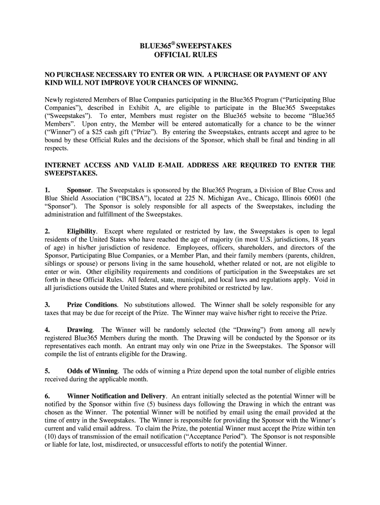 Any individual or organization running a promotion or sweepstakes under the name blue365 is required to file blue365 sweepstakes.
