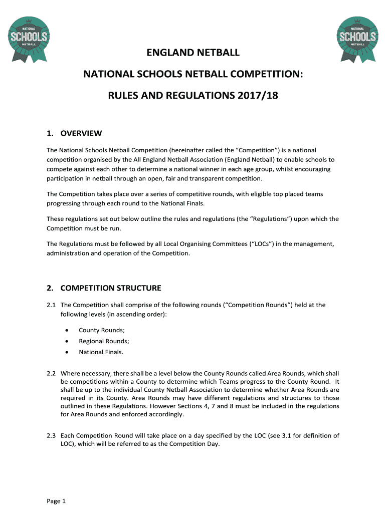 The National Schools Netball Competition (hereinafter called the Competition) is a national