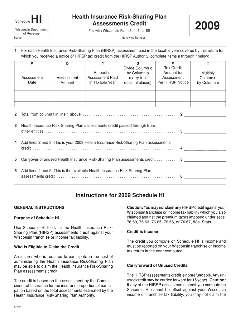 Insurance companies that have paid HIRSP assessments during the taxable year and are seeking to claim credits against their Wisconsin franchise or income tax are eligible to use this form.