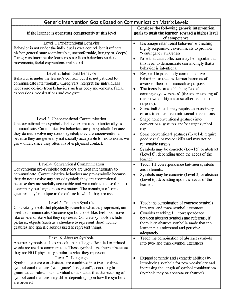 Get the free Generic Intervention Goals Based on Communication Matrix Levels