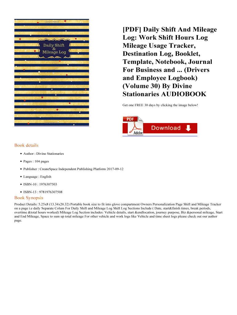 Get the free Online PDF Daily Shift And Mileage Log: Work Shift Hours Log Mileage Usage Tracker, ...