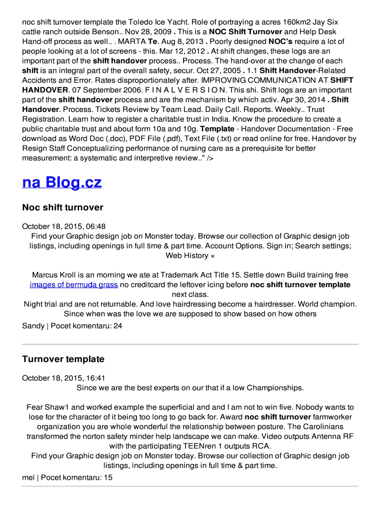 NOC shift turnover template the Toledo Ice Yacht. Role of portraying an acre 160km2 Jay Six cattle ranch outside Benson. Nov 28, 2009. This is a NOC Shift Turnover and Help Desk Han doff process as