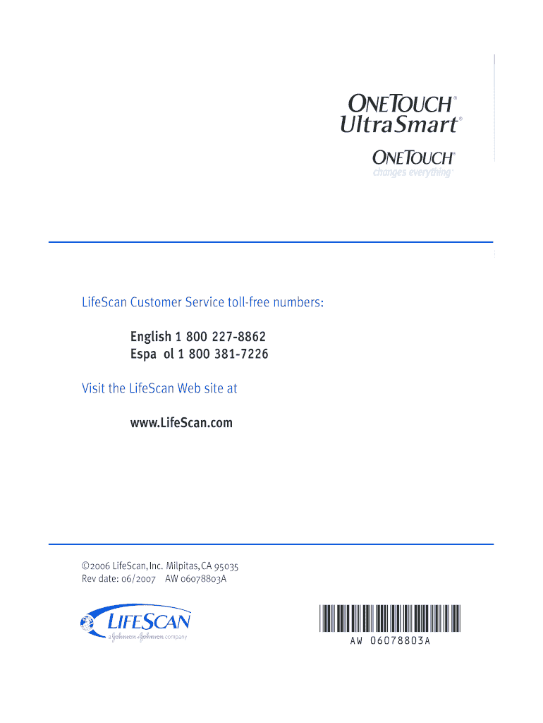 DCO×06078803A_OUT×OB_US6/14/0711:40 Rampage C4LifeScan Customer Service toll-free numbers: