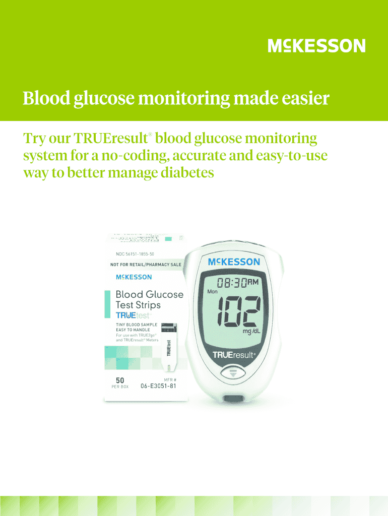 Blood glucose monitoring made easier Try our TRUE result blood glucose monitoring system for a no coding, accurate and espouse way to better manage diabetesTRUEresult Blood Glucose Monitoring System