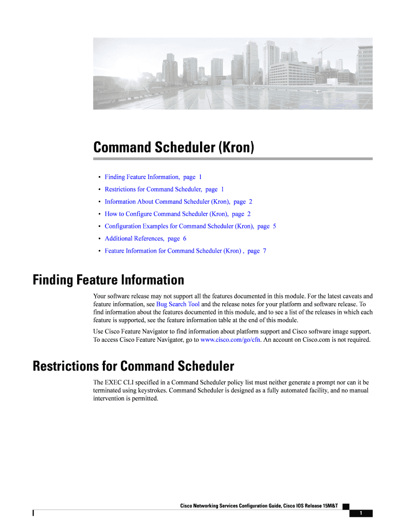 Command Scheduler (Iron) Finding Feature Information, page 1 Restrictions for Command Scheduler, page 1 Information About Command Scheduler (Iron), page 2 How to Configure Command Scheduler (Iron),