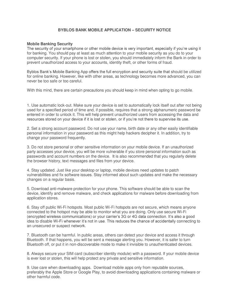Get the free BYBLOS BANK MOBILE APPLICATION SECURITY NOTICE