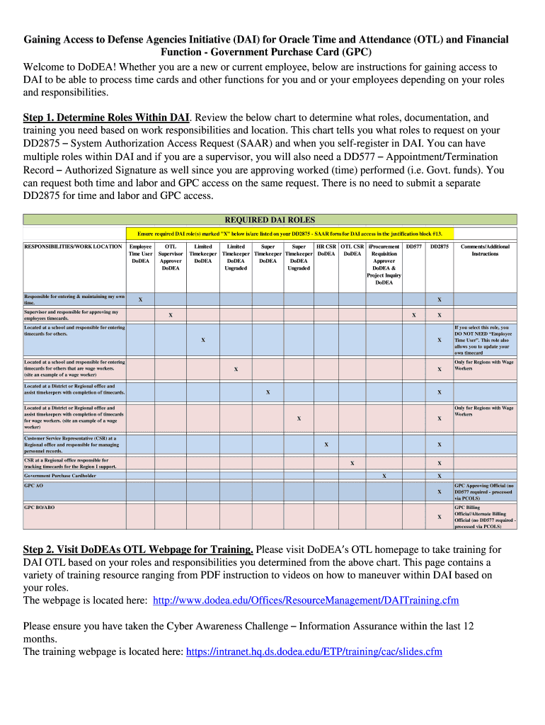 Get the free Gaining Access to Defense Agencies Initiative (DAI) for Oracle Time and Attendance (...