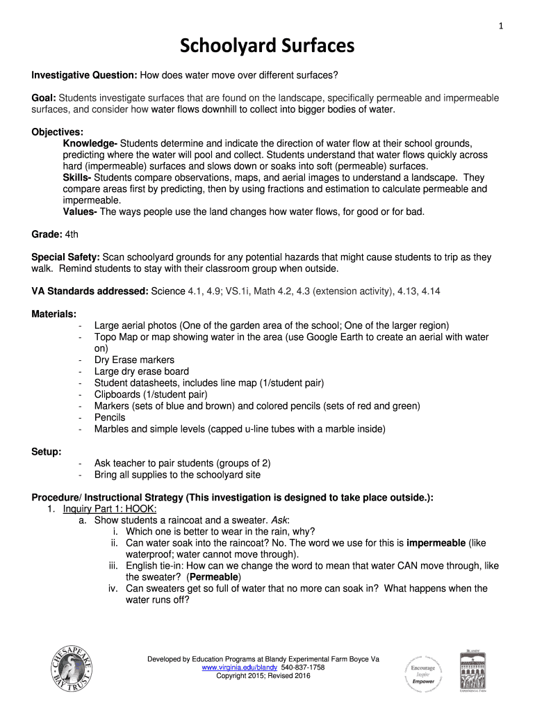 Get the free Investigative Question: How does water move over different surfaces