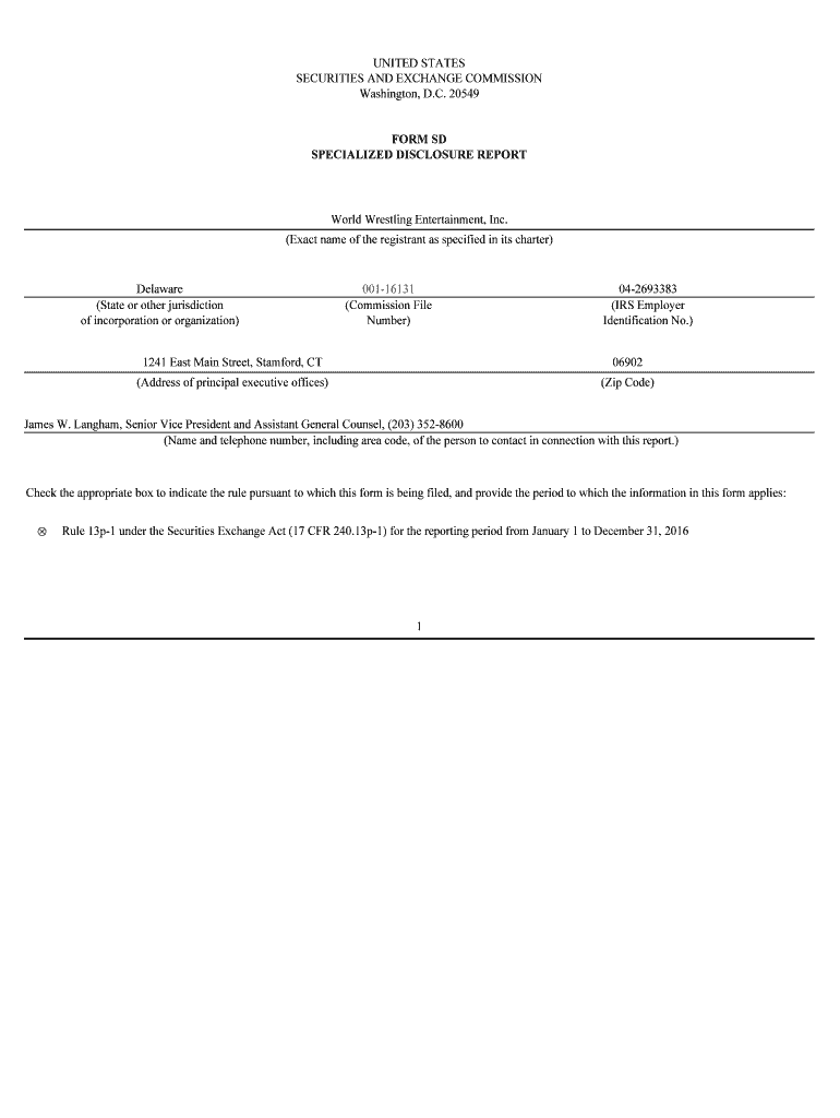 SPECIALIZED DISCLOSURE REPORTWorld Wrestling Entertainment, Inc.