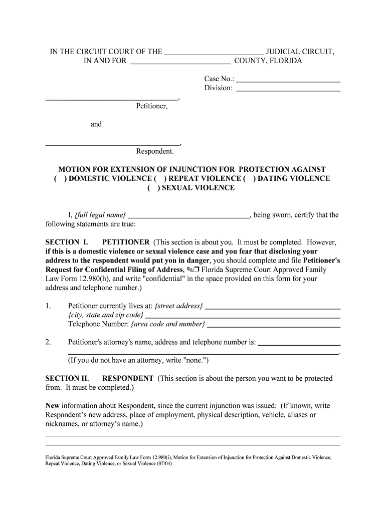 MOTION FOR EXTENSION OF INJUNCTION FOR PROTECTION AGAINST DOMESTIC