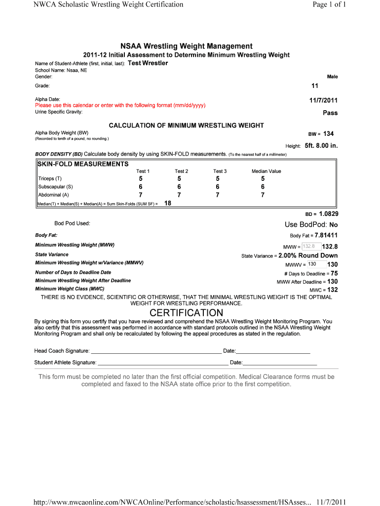 NACA Scholastic Wrestling Weight Certification Page 1 of 1NSAA Wrestling Weight Management