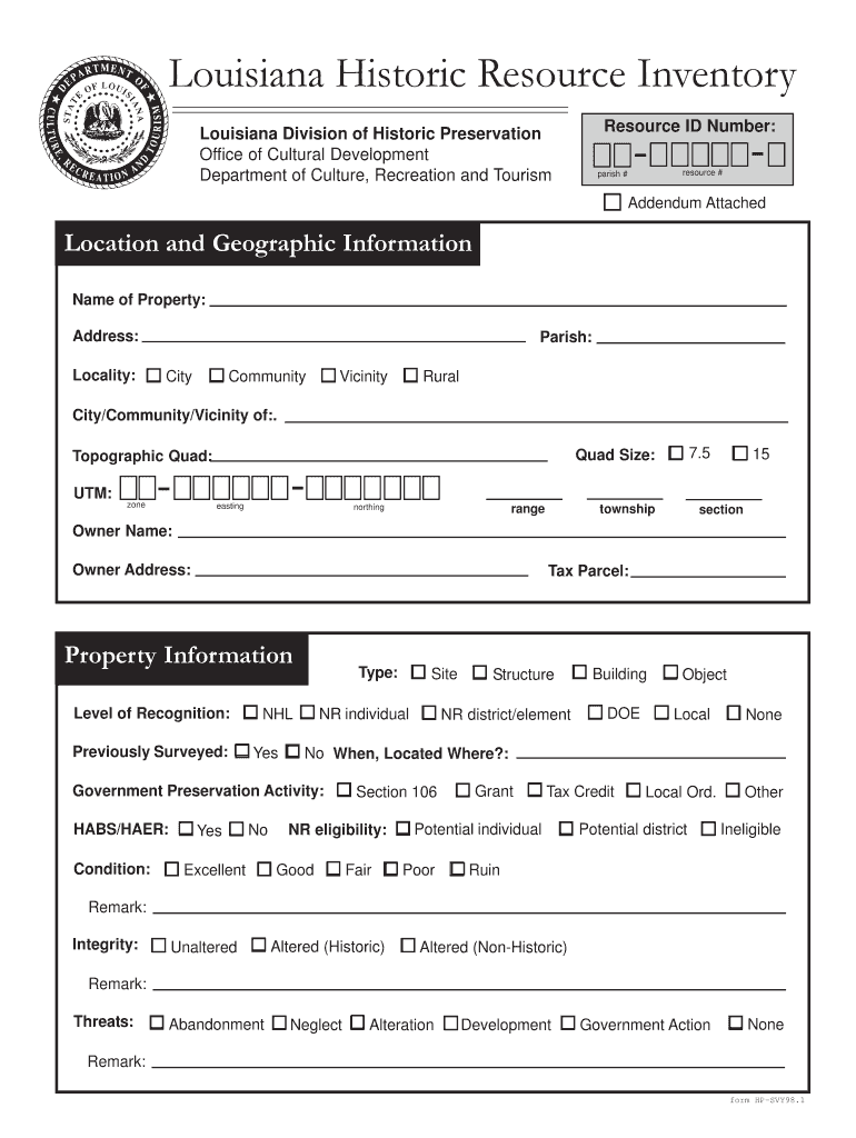 How to Fill Out the Louisiana Historic Resource Inventory Form Online
