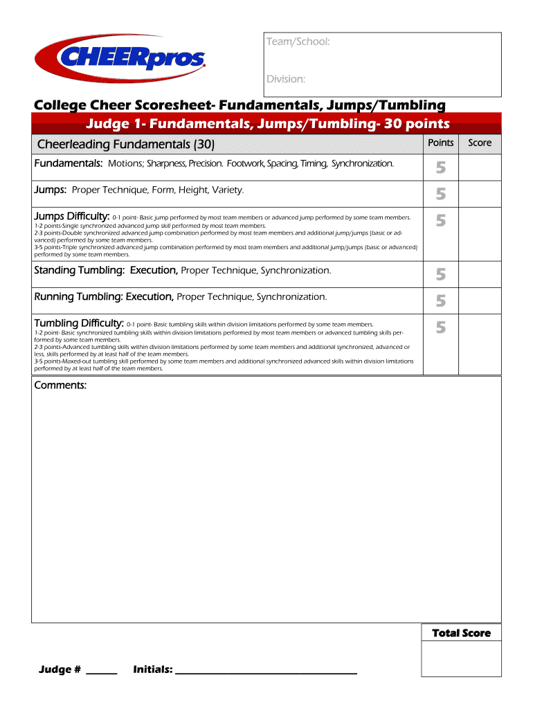 Get the free College Cheer Scoresheet- Fundamentals, Jumps/Tumbling