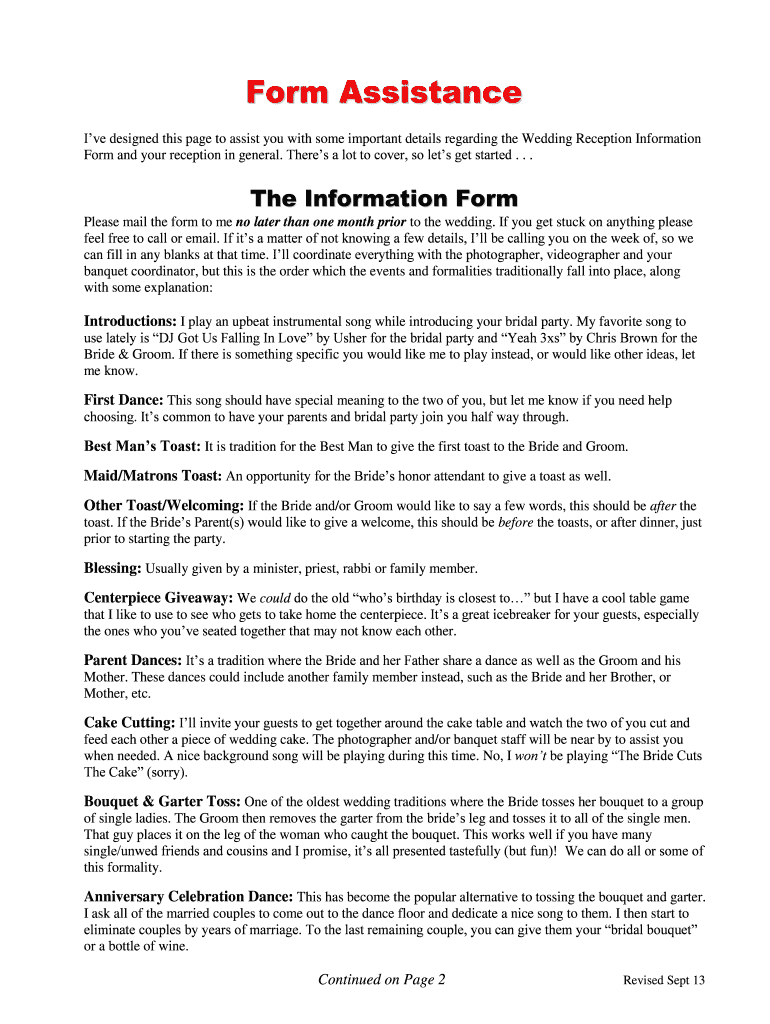 I've designed this page to assist you with some important details regarding the Wedding Reception Information