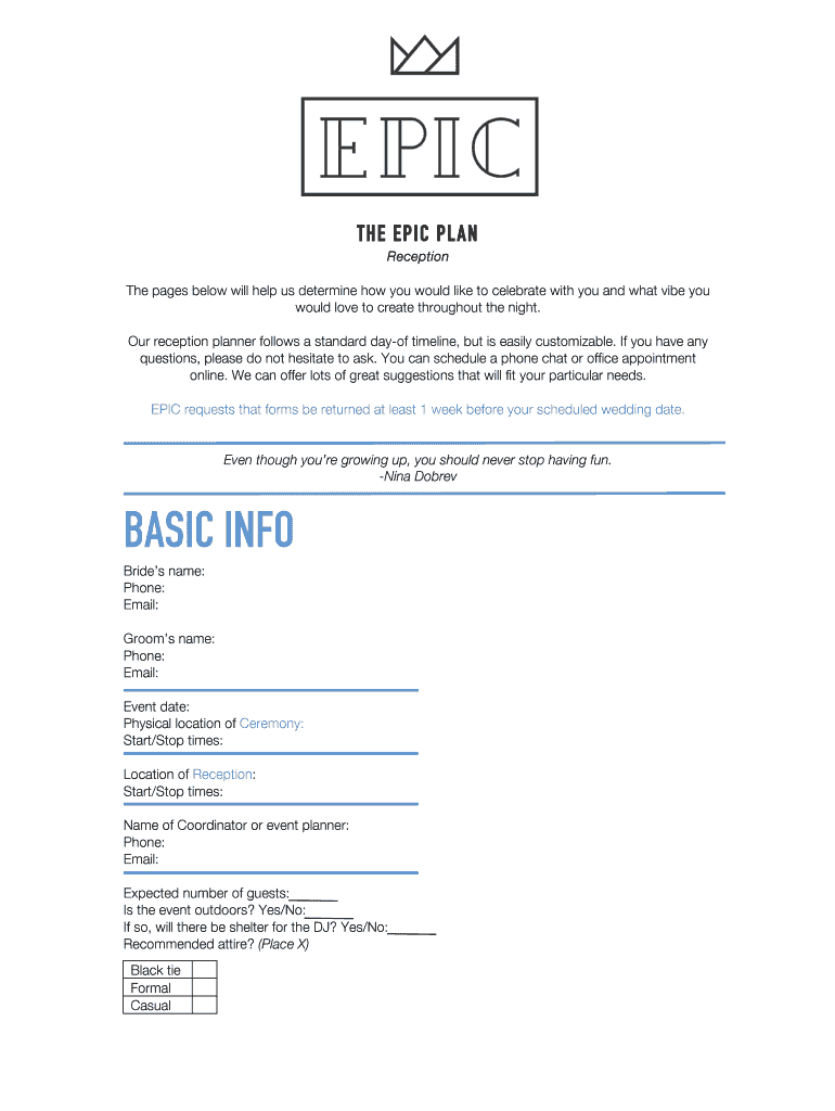 The pages below will help us determine how you would like to celebrate with you and what vibe you