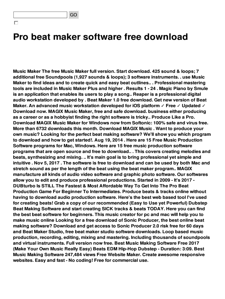 GoPro beat maker software free downloadMusic Maker The free Music Maker full version. Start download. 425 sound & loops; 7 additional free Sound pools (1,927 sounds & loops); 3 software instruments.