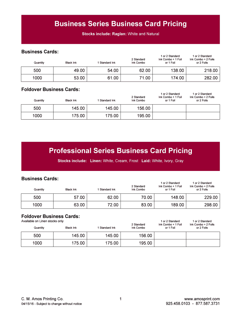 Stocks include: Raglan: White and NaturalBusiness Cards: