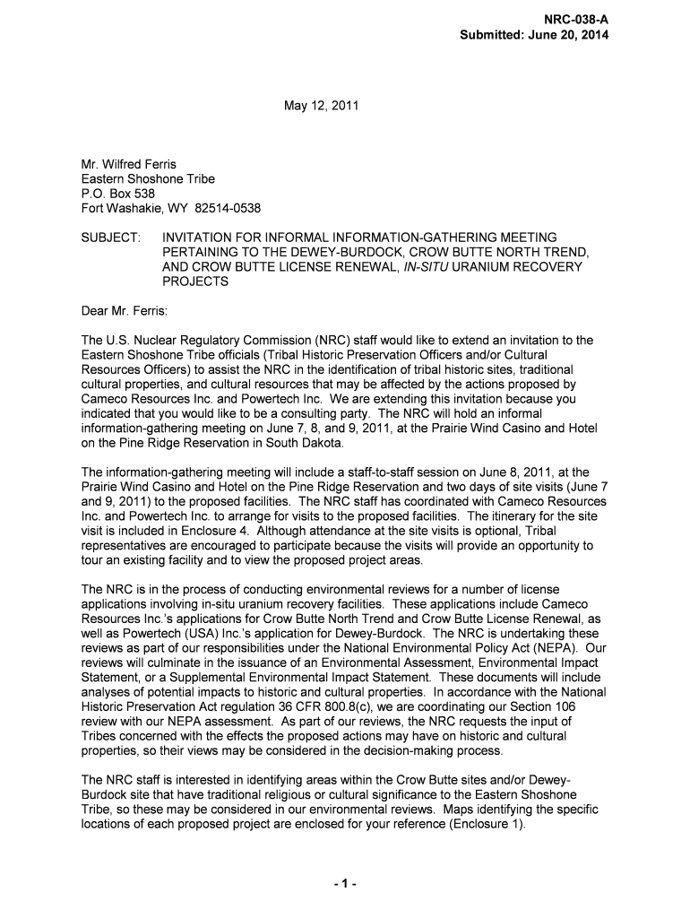Submitted: June 20, 2014May 12, 2011Mr. Wilfred Ferris