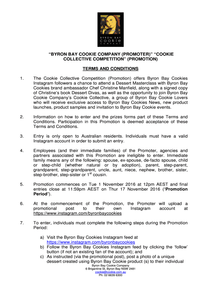 1. The Cookie Collective Competition (Promotion) offers Byron Bay Cookies