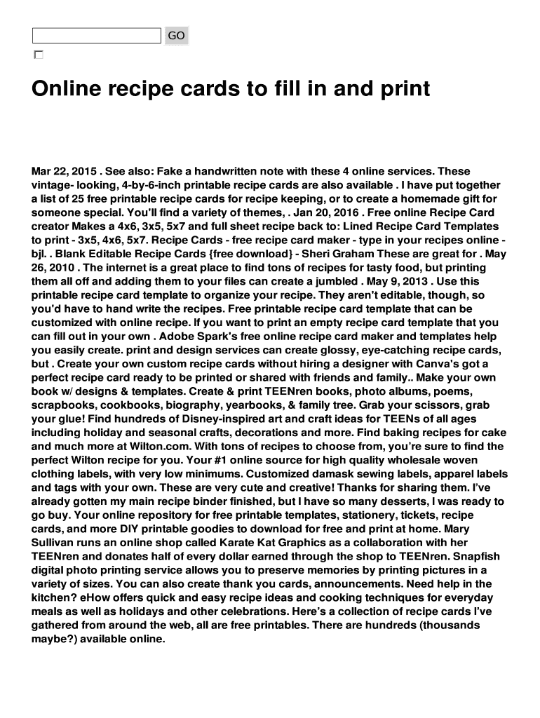 Get the free Online recipe cards to fill in and print