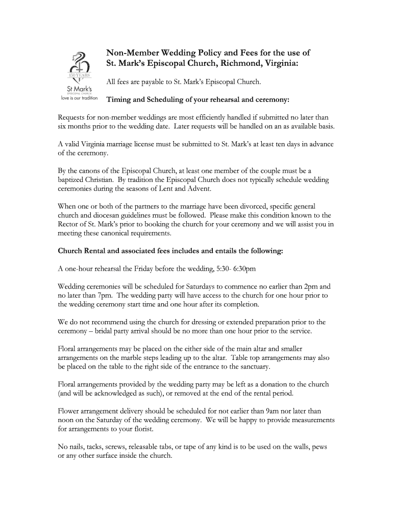 Get the free Non-Member Wedding Policy and Fees for the use of