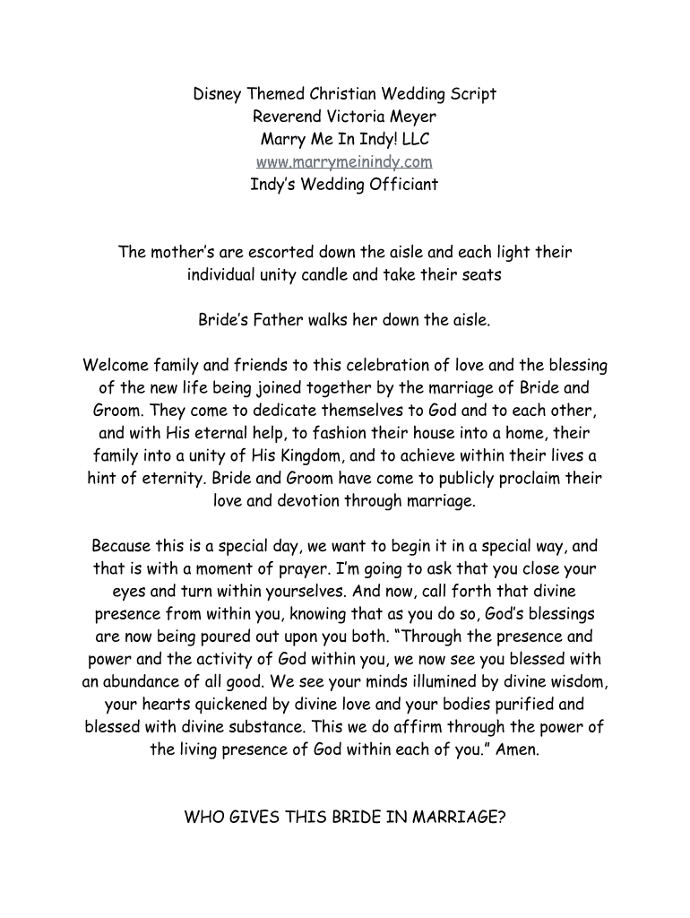 Disney Themed Christian Wedding Script