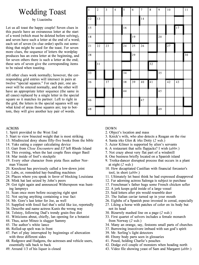 Wedding Toast12by Ucaoimhu1213Let us all toast the happy couple! Seven clues in