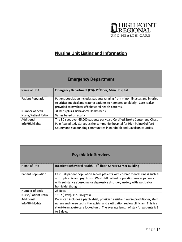 Name of UnitEmergency Department (ED) 2nd Floor, Main HospitalPatient PopulationPatient population includes patients ranging from minor illnesses