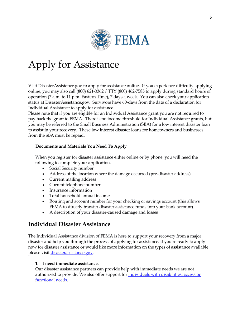 Visit DisasterAssistance.gov to apply for assistance online. If you experience difficulty applying