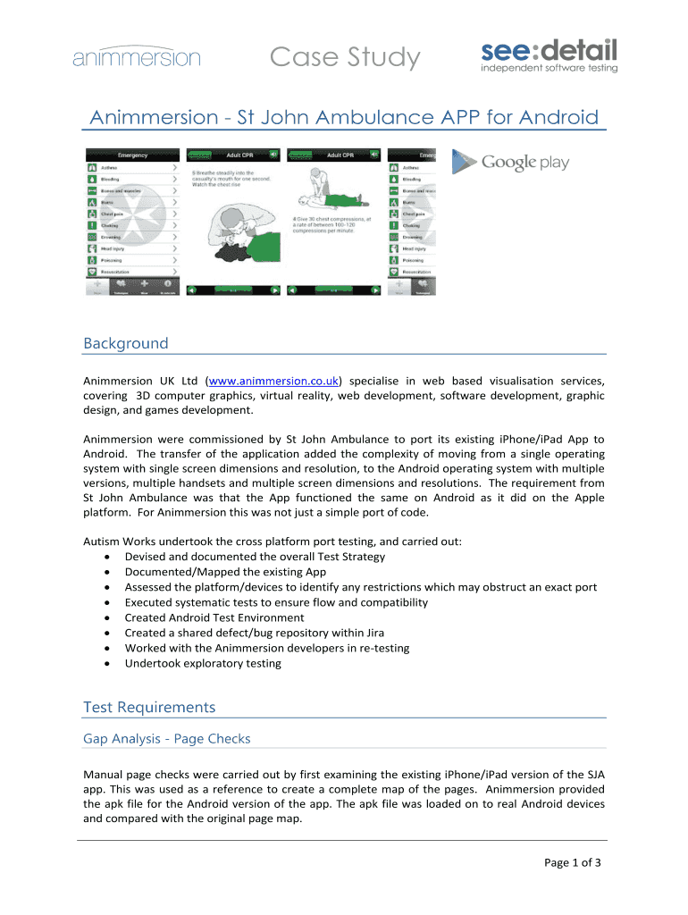 Case Study An immersion St John Ambulance APP for AndroidBackground An immersion UK Ltd (www.animmersion.co.uk) specialize in web based visualization services, covering 3D computer graphics, virtual